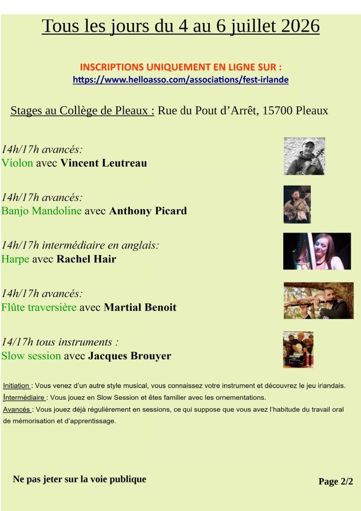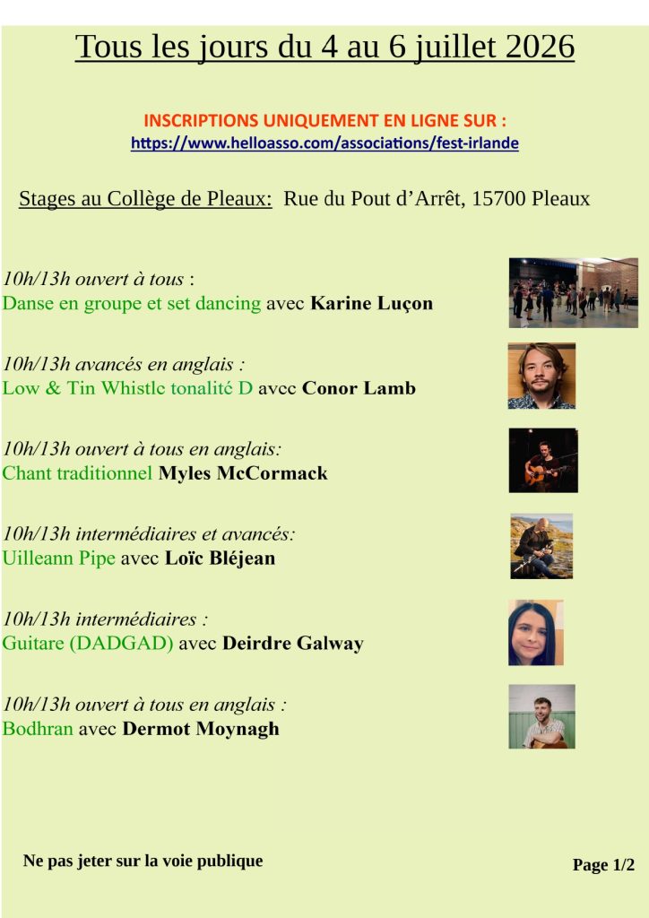 L’animation musicale du bal est assurée par Conor Lamb (whistle, UIlleann Pipe), Deirdre Galway (guitare), Dermot Moynagh (bodhran), Myles Cormagh (mandoline), Rachel Hair (harpe) Vincent Leutreau (violon), Anthony Picard (banjo) et Loïc Bléjean (Uilleann Pipe), Martial Benoit ( flûte irlandaise), Jacques Brouyer (accordéon)